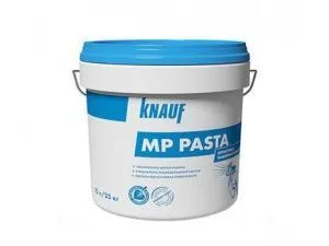 Knauf МП Паста - пастообразный материал на виниловой основе. Используется как финишный слой на различных поверхностях: гипсокартон, гипсоволокно, бетонные основания, подвергшиеся предварительной обработке штукатуркой. Материал подходит для механического нанесения безвоздушными насосами или распылителями.Knauf МП Паста отличается морозостойкостью, ее можно подвергать заморозке и оттаиванию, но не более 5 раз. Она не образует трещин, ложится хорошим ровным слоем на поверхность, хорошо шлифуется и придает поверхности идеально белый оттенок, что позволяет наностить на нее даже тонкие или светлые обои.